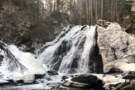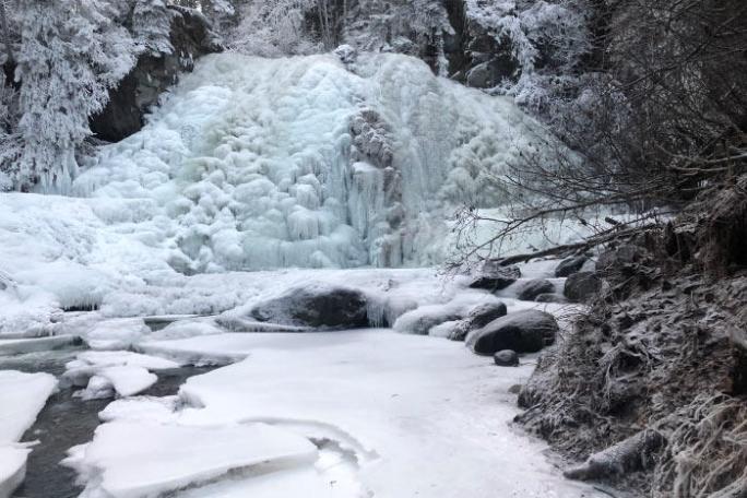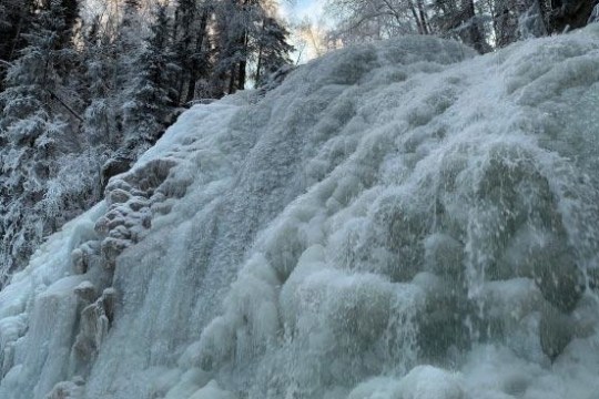Onward, we’ll follow the gorgeous South Fork Eagle River, pausing to observe ice-dam formations created by frigid-cold and fast-moving water. Ice crystals appear to grow from the surface of the water, slowing and raising the water level in terrific ways. Just minutes later, we arrive at the base of the magical 35-foot waterfall where you see shimmering icicles, fascinating ice bridges and falling water frozen-in-time. After stocking up a store of photos to show your friends and family, we’ll head back with plenty of time for your next Alaskan experience. What do you say? Let’s go check out the falls together!